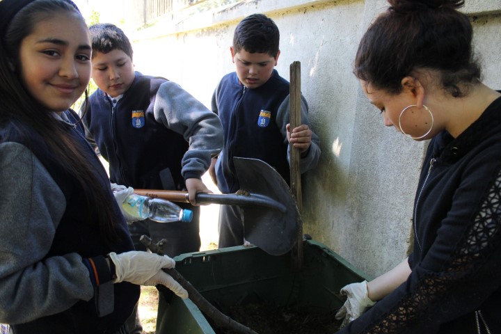 Dado que la Escuela Alborada dispone de dos composteras para aportar materia orgánica al suelo, el profesor de ciencias, Rodolfo Araneda, preparó a sus estudiantes del Taller de Ecología para trabajar con las composteras, procurando el reciclaje de desechos orgánicos que normalmente botamos a la basura.