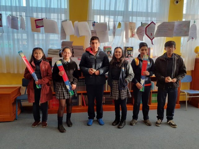 Estudiantes de sexto año básico junto a la docente, Poleth Jaque Barra.